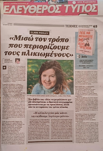 Συνέντευξη της CLARE POOLEY στη Γιούλη Τσακάλου – Ελεύθερος τύπος